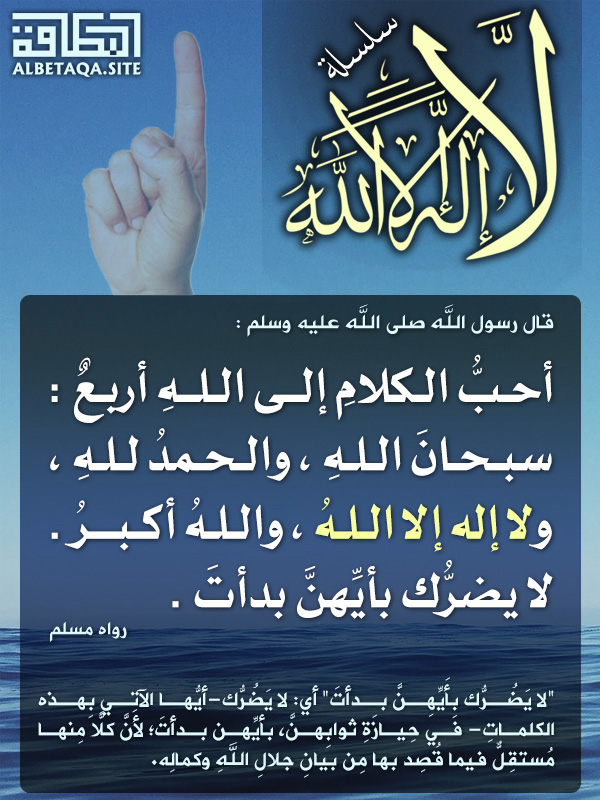 ي بي ن النبي صل ى الله عليه وسل م أن أحب كلام الع باد إلى الله تعالى أي. أحب الكلام إلى الله تعالى ما هو الحديث الشامل في قولنا سبحان الله والحمد الله والله أكبر ولا إله إلا الله يقال هناك حديث في قصة إبراهيم والملكة فلعل السائل الكريم يقصد بالحديث الشامل ما رواه مسلم وغيره أن رسول الله صلى. وأشار الى أن من يلازم ترديد هذه الكلمات لا يمسه الضر أبد ا مستند ا إلى حديث رسول الله صلى الله عليه وسلم أ ح ب الك لام إلى الله أر ب ع.