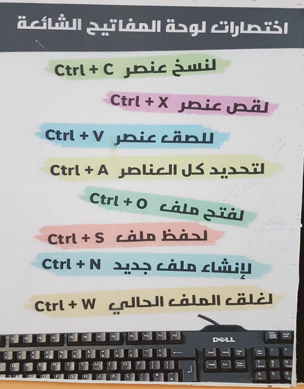 اختصارات لوحة المفاتيح الشائعة