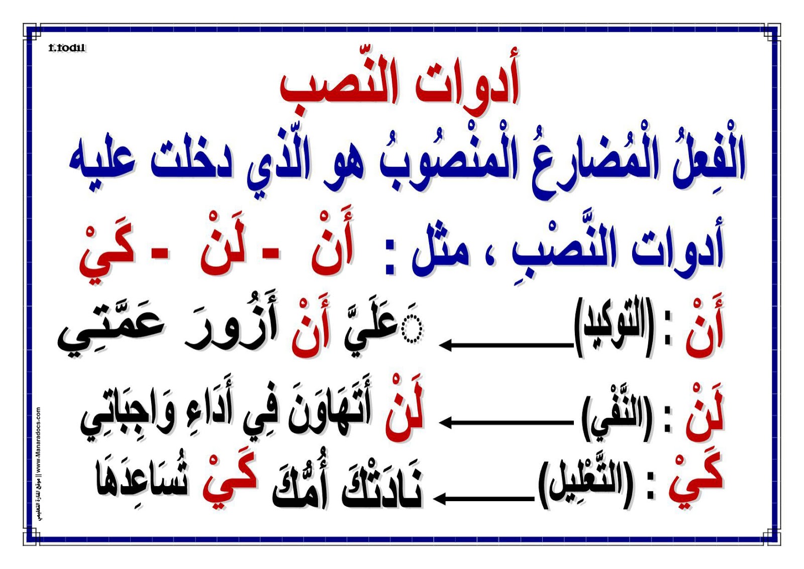 شرح ادوات نصب وجزم الفعل المضارع اللغة العربية حروف
