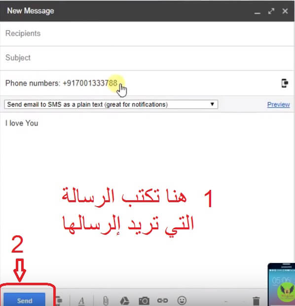 ارسال رسائل Sms مجانا من ايميل الجيميل الى الهواتف Youtube