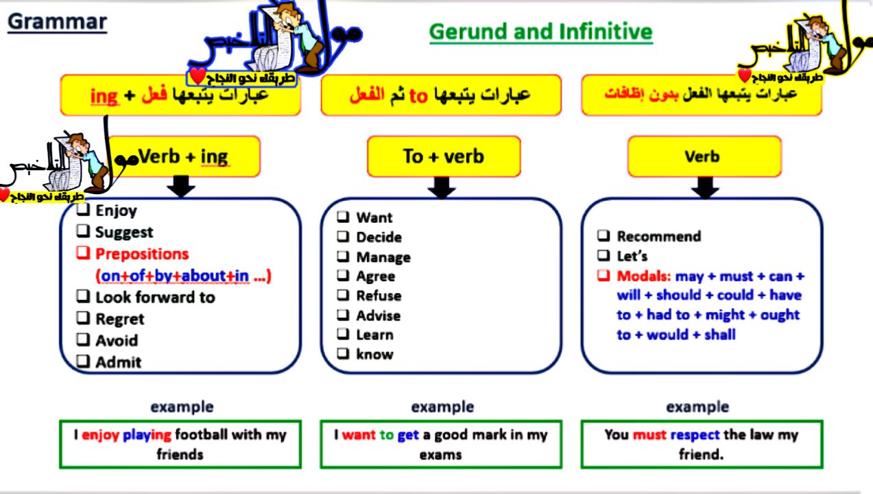 Gerunds and infinitives شرح بالعربي. شرح قاعدة gerund تحويل الفعل الى اسم. This video covers verbals. وعليكم السلام ورحمة الله وبركاته اهلا بك راح اقدم لك شرح قاعدة infinitives بالعربي بشكل مختصر للتوضيح. Palying و taking و working و listening و writing 2.
